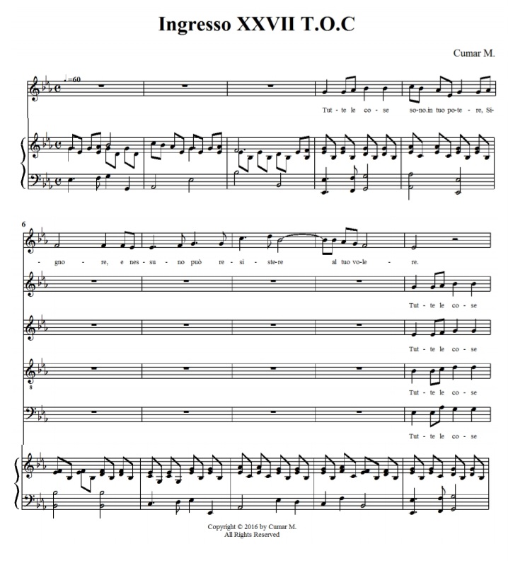 - 1)Canto d’ingresso: Canto d’ingresso XXVII Domenica del Tempo Ordinario anno ABC (Camar M.);