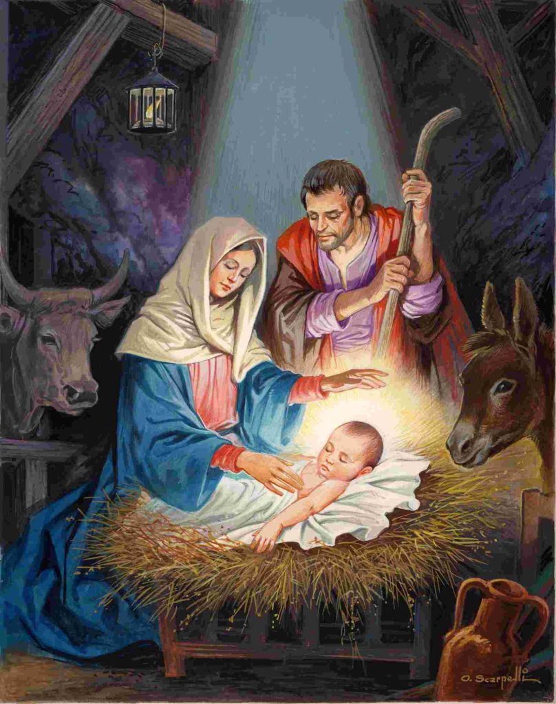 Una mangiatoia, un bambino, Maria in contemplazione, Giuseppe meditabondo: “Veramente tu sei un Dio misterioso!”. Il Padre, il solo che conosce il Figlio, ci conceda di riconoscerlo affinché l’amiamo e lo imitiamo.